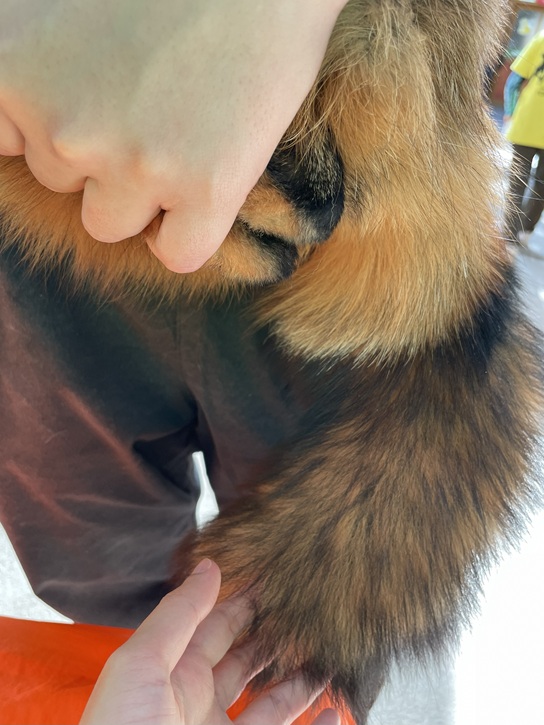 最後に尻尾を触らせてもらいました。尻尾は超柔らかかった!!もっふもふうううううううう。