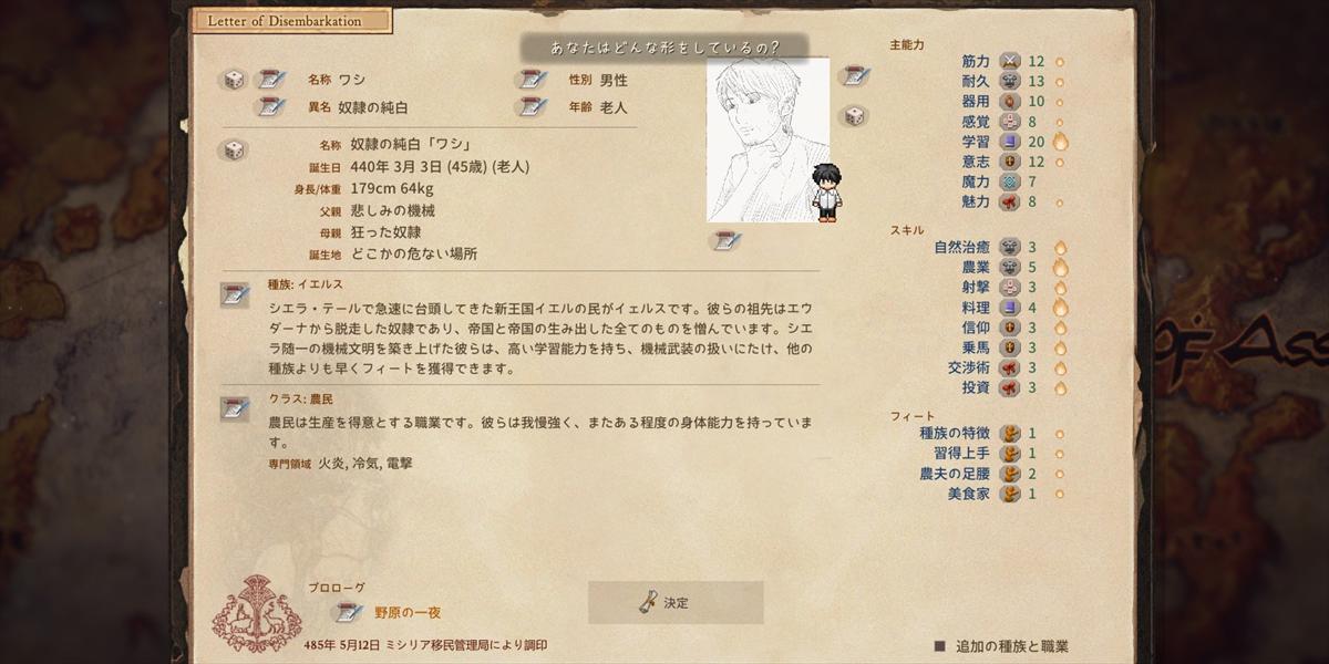 父親が機械になっているし年齢自由に設定できないし、種族もクラスもそれがどういう恩恵があるのかすら分からない。