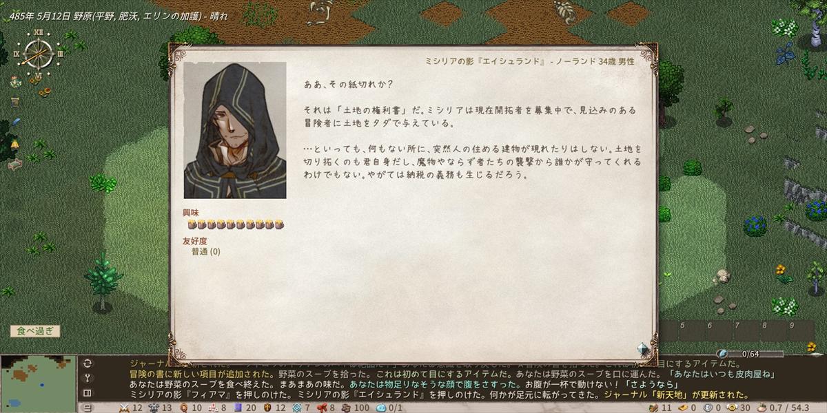 この土地をどう開拓して何を生きれば全然分からないけど、とにかくやべー奴らに絡まれているという事を理解した所で今日はここまで。