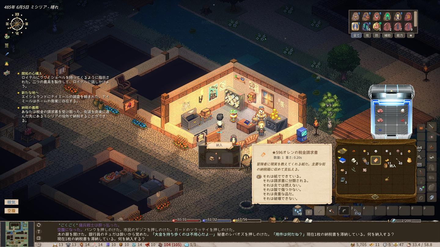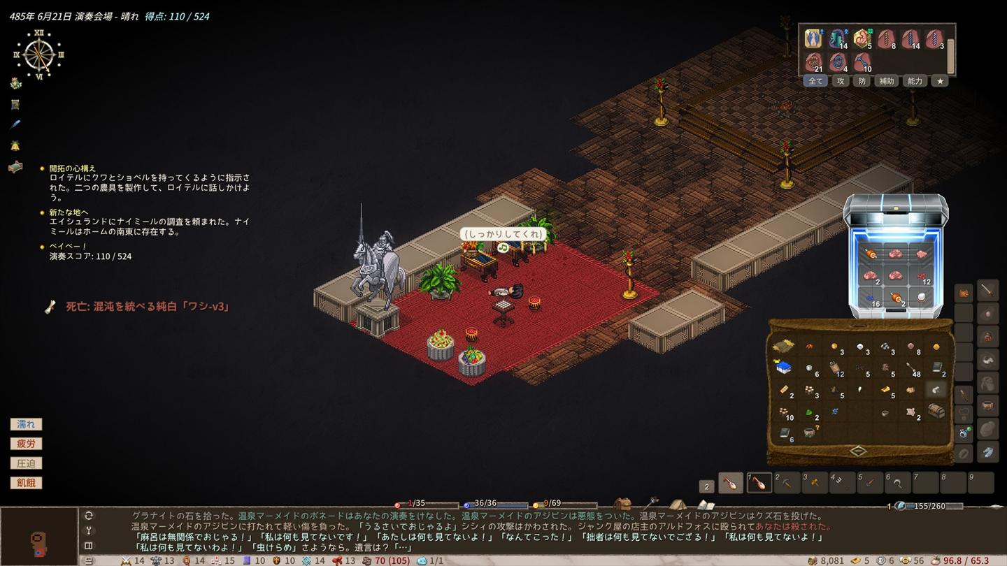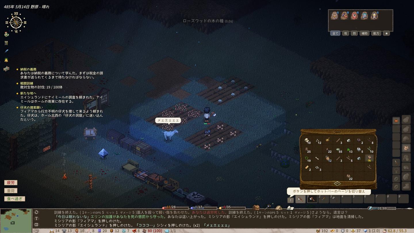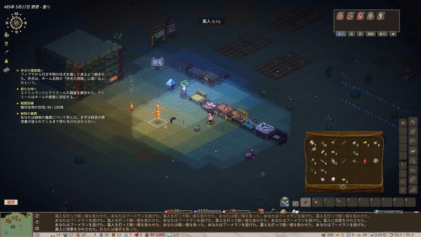 過労で何度もくたばりつつも、拠点を拡充させる方法については何となくレベルで理解しました。なお、あまりにも最初に作ったキャラがどうしようもなさすぎてキャラを一度作り直したのは秘密。
