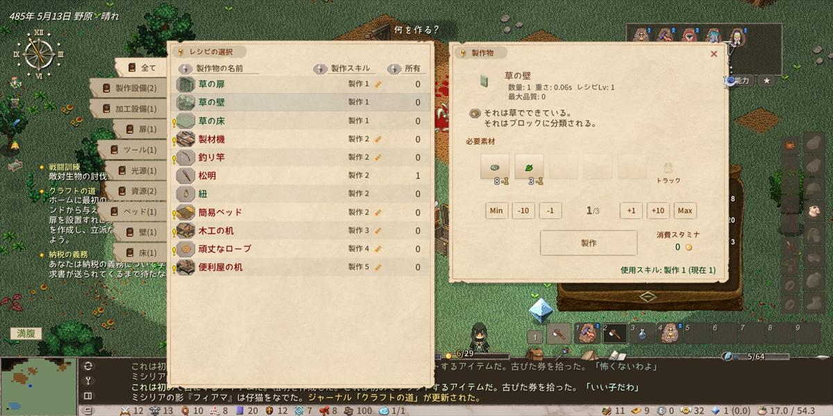 ここが最初理解するのに時間かかったのだが、クラフトなど特定の行動を取るとスタミナを消費する。