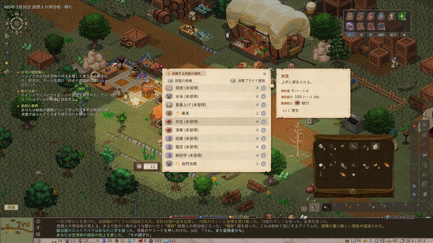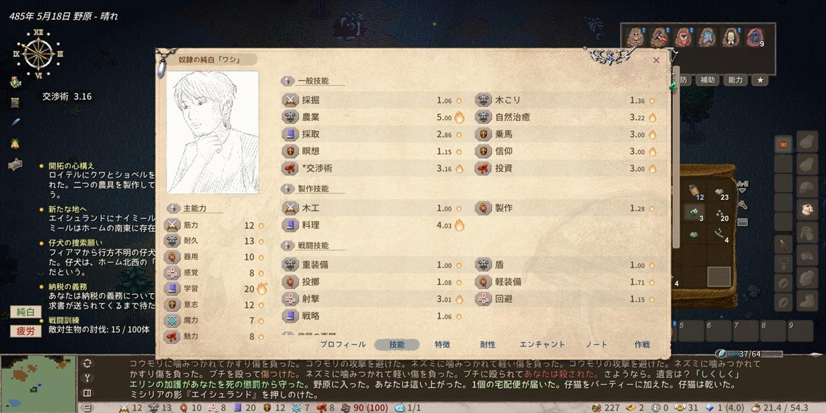 が、町中でとりあえず何度もそこら辺のNPCとおしゃべりしているとある日突然交渉術のスキルが上昇。