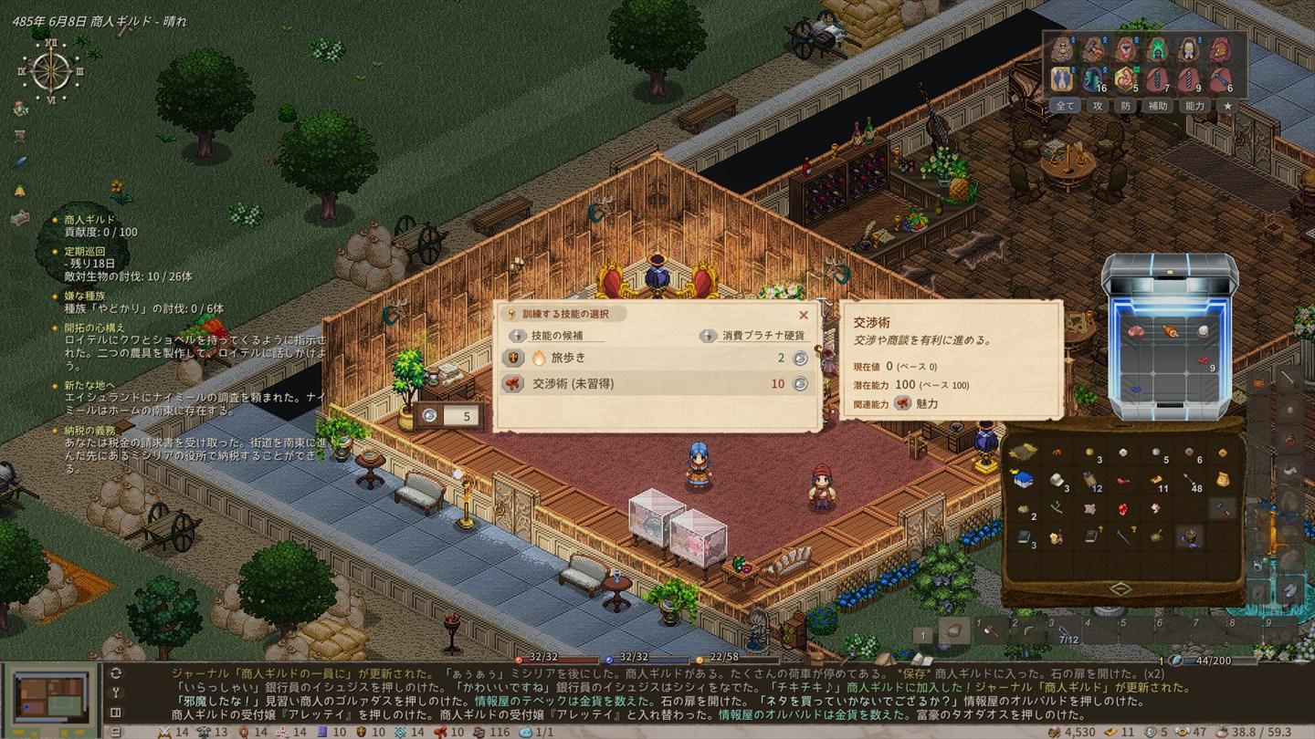 今後はちょくちょく通りすがりのNPCに話しかけて交渉術を上げていこう。