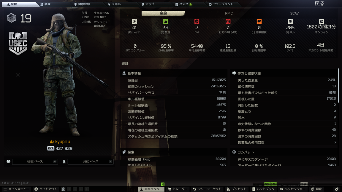最後に遊んでいたのが確かPvEが初実装された時なので去年のGWくらいだった気もするが、それから大体一年経過して再びこのタルコフ市に戻ってきてしまった。