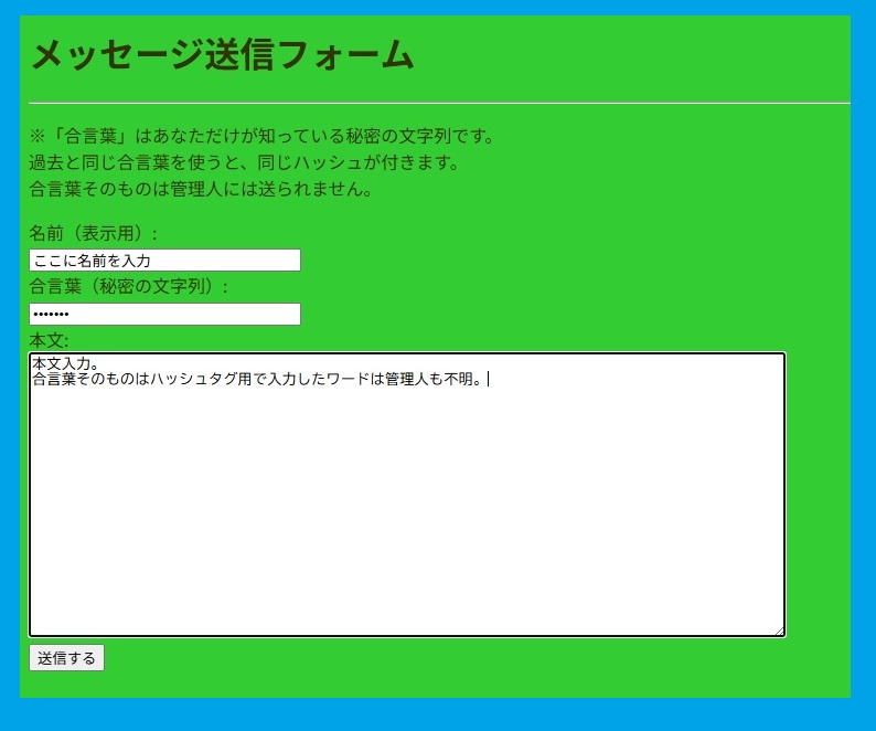 ※入力した合言葉そのものは私が知る術はなく、SSL通信なので暗号化されているので基本大丈夫なはずですが、念の為あんまり大事な文字列は入力避けていただければと思います。