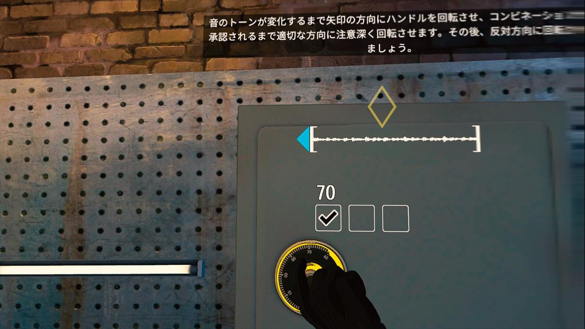 説明文ではまず左にダイヤルを回し、特徴的な音がしたら反対方向へ、再びその音がしたらまた反対側へ回して三回あてれば解錠・・・というふうに書いてある。