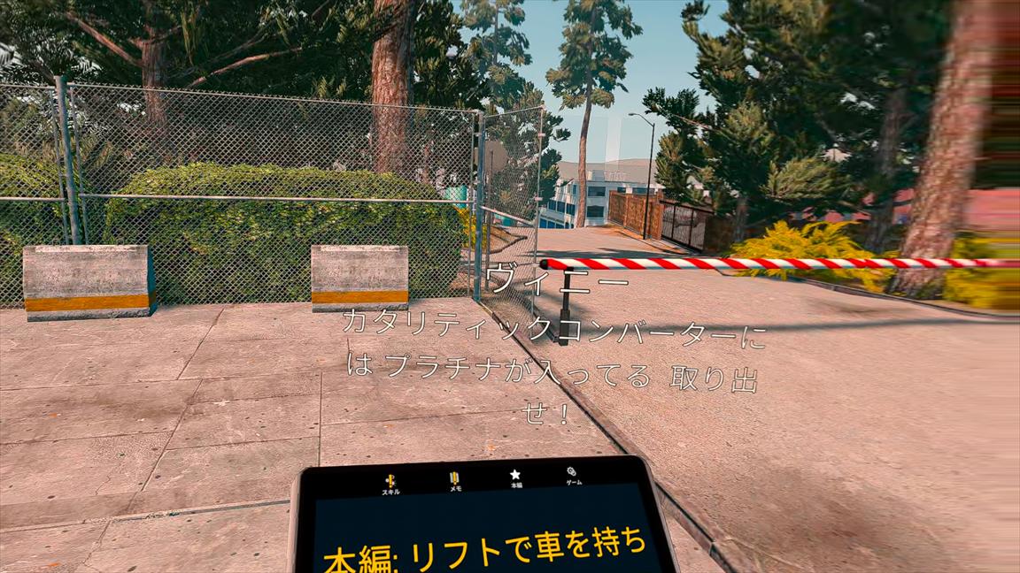 「こちらヴィニー。回収した車はカタリティックコンバーターにプラチナが入っているからそれを取り出してコイ。」